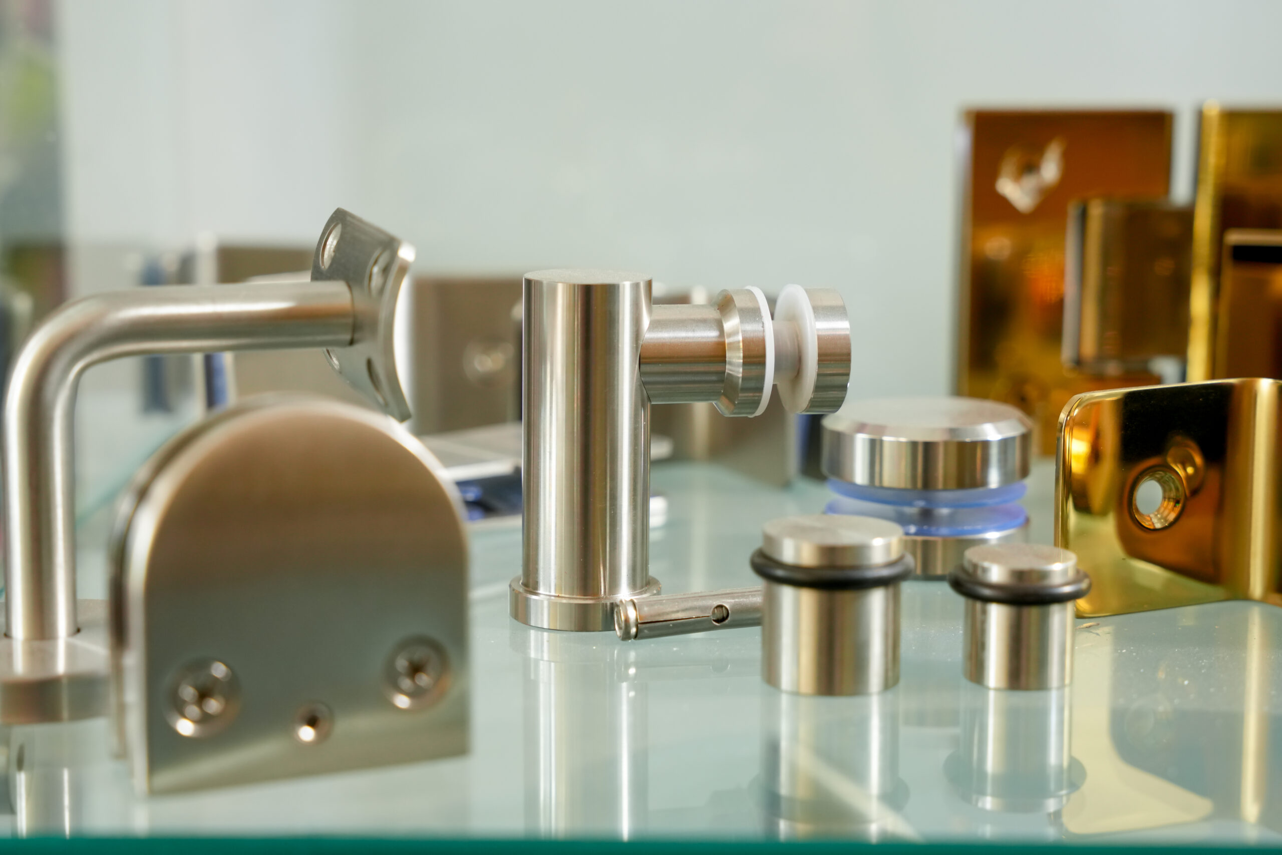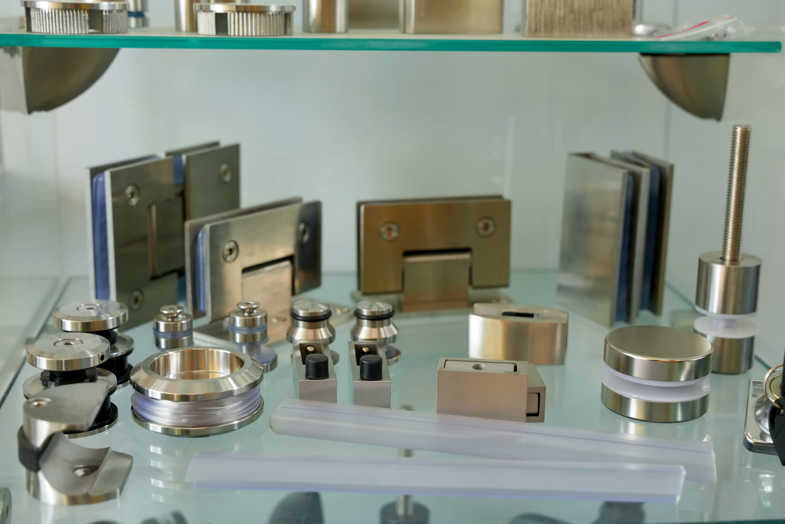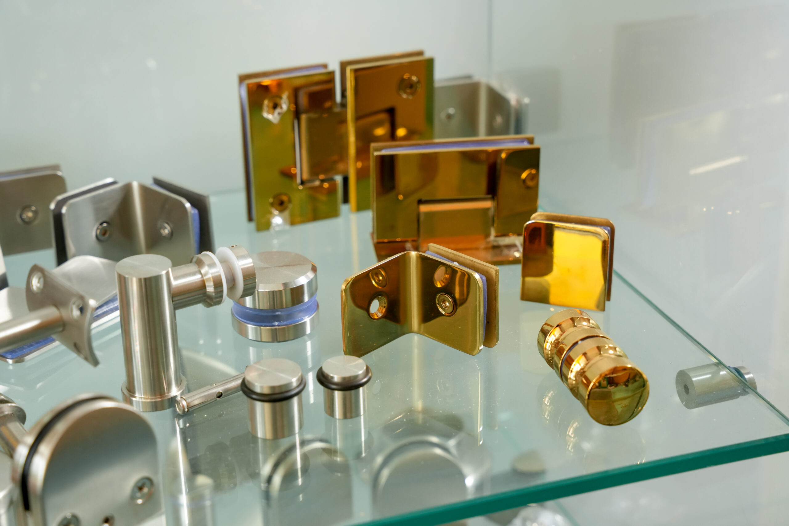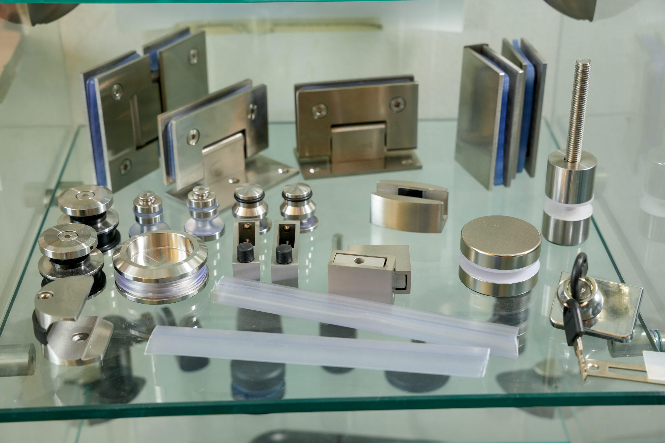 Herrajes para vidrio resistentes y seguros. Ideales para puertas, canceles y divisiones con un acabado moderno y profesional.