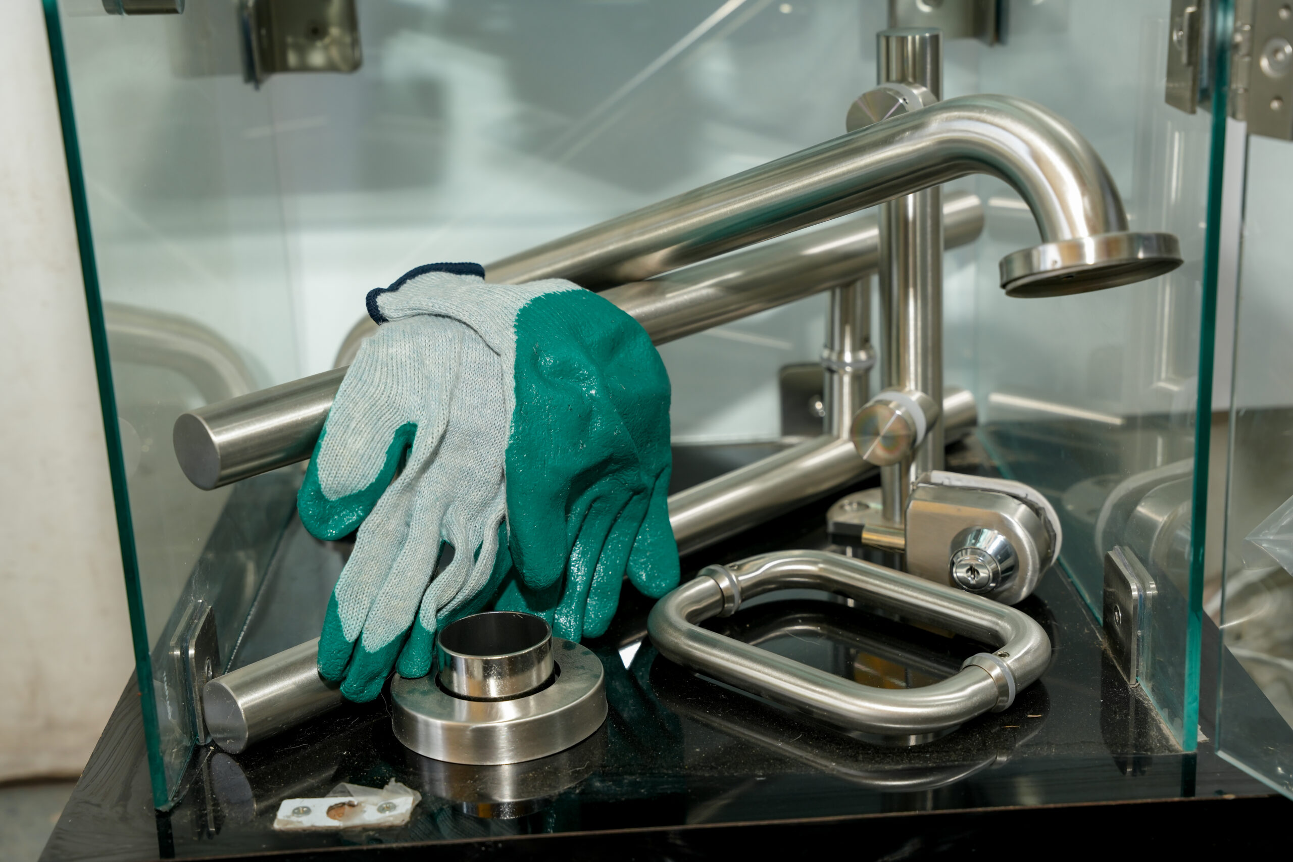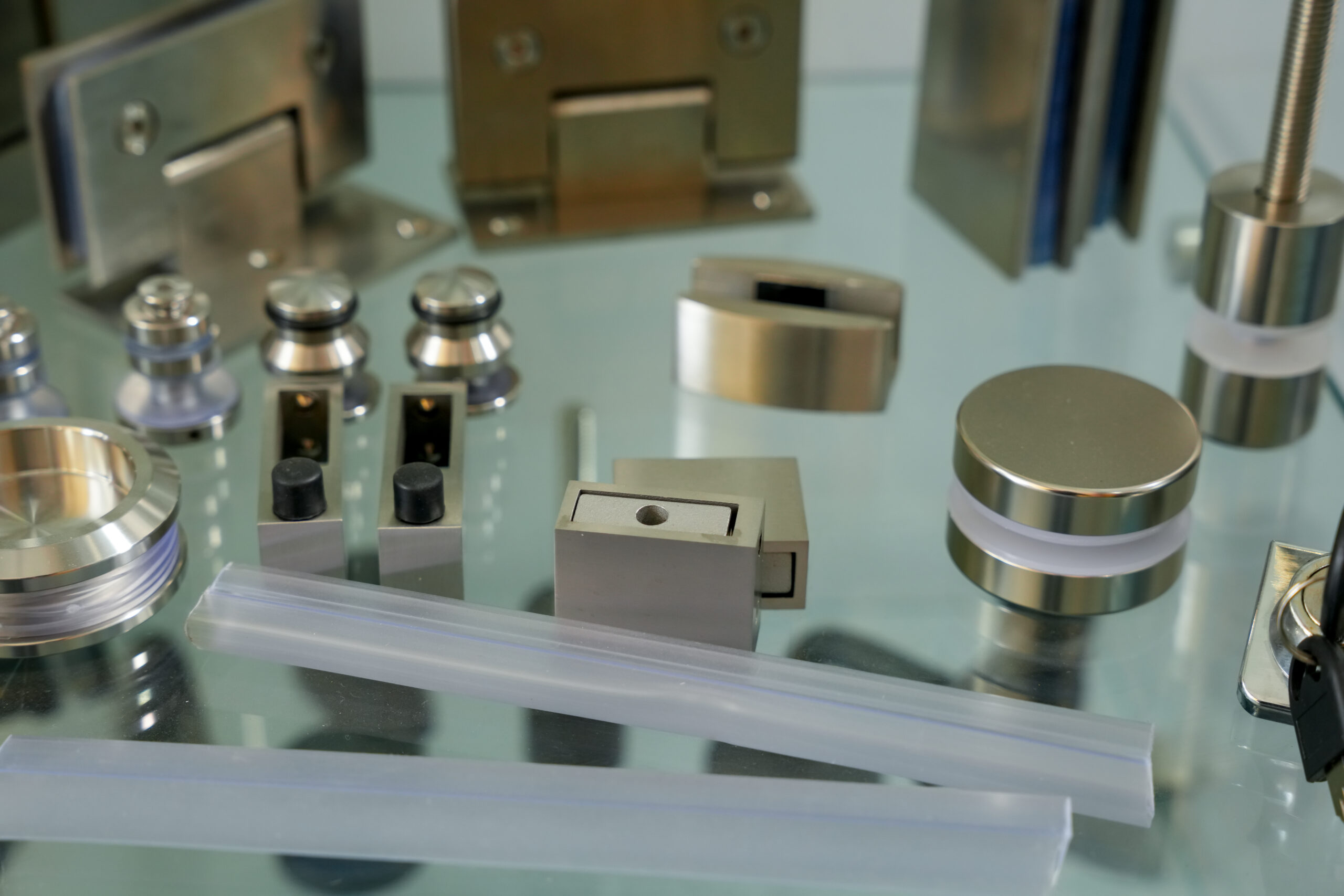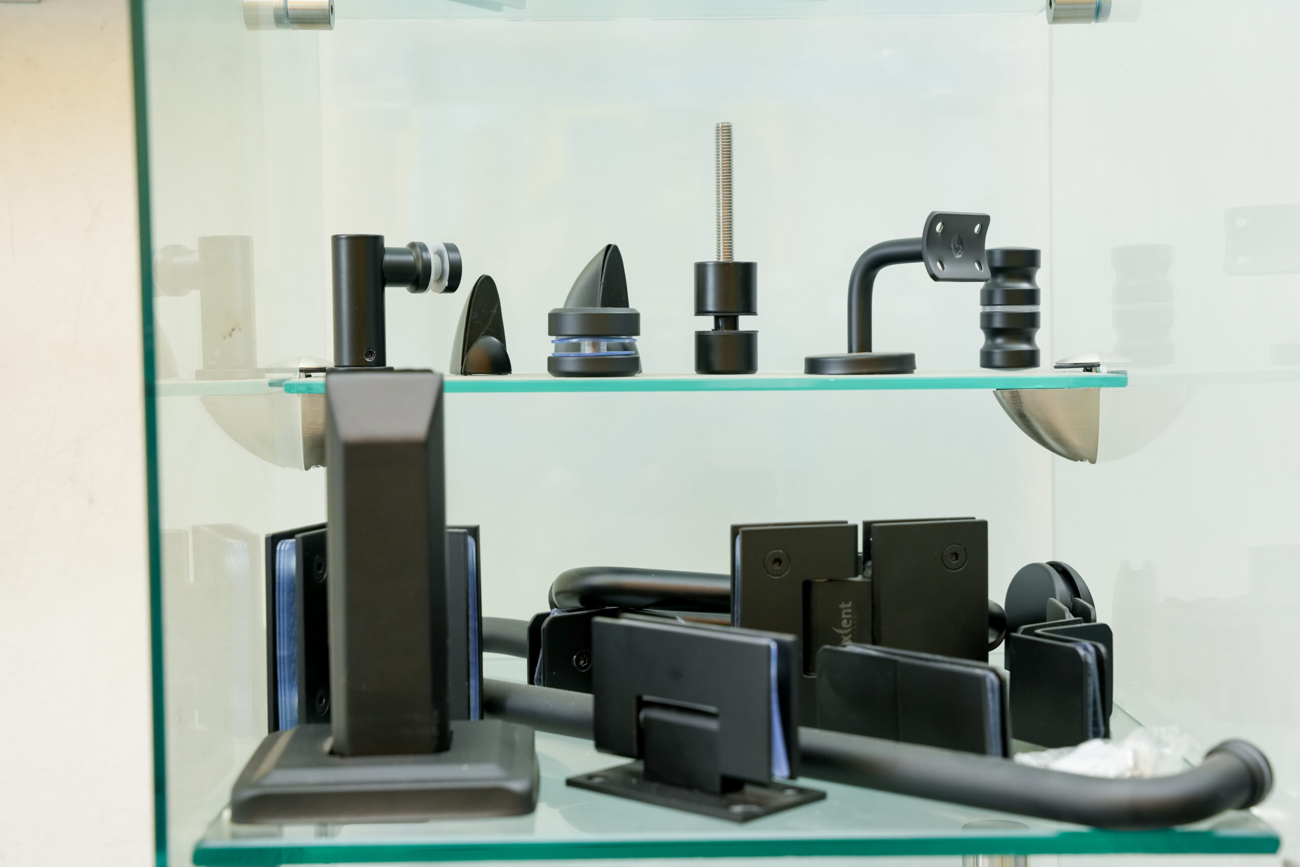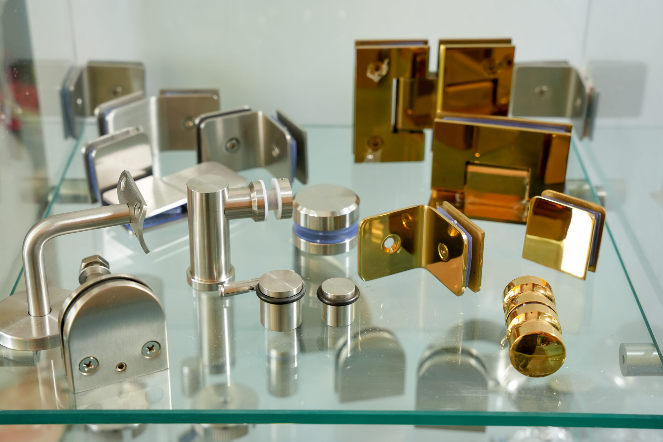 Herrajes para vidrio resistentes y seguros. Ideales para puertas, canceles y divisiones con un acabado moderno y profesional.